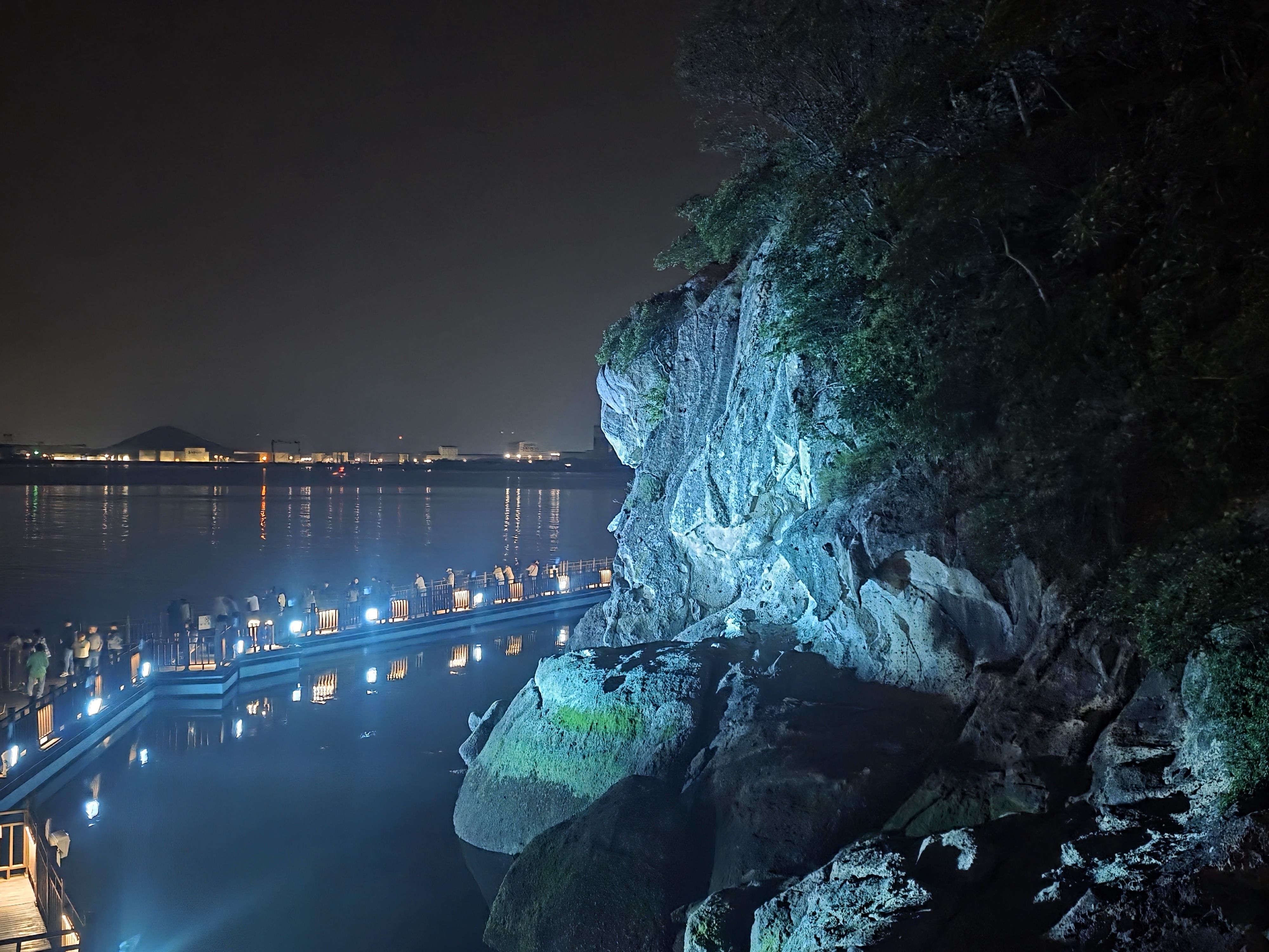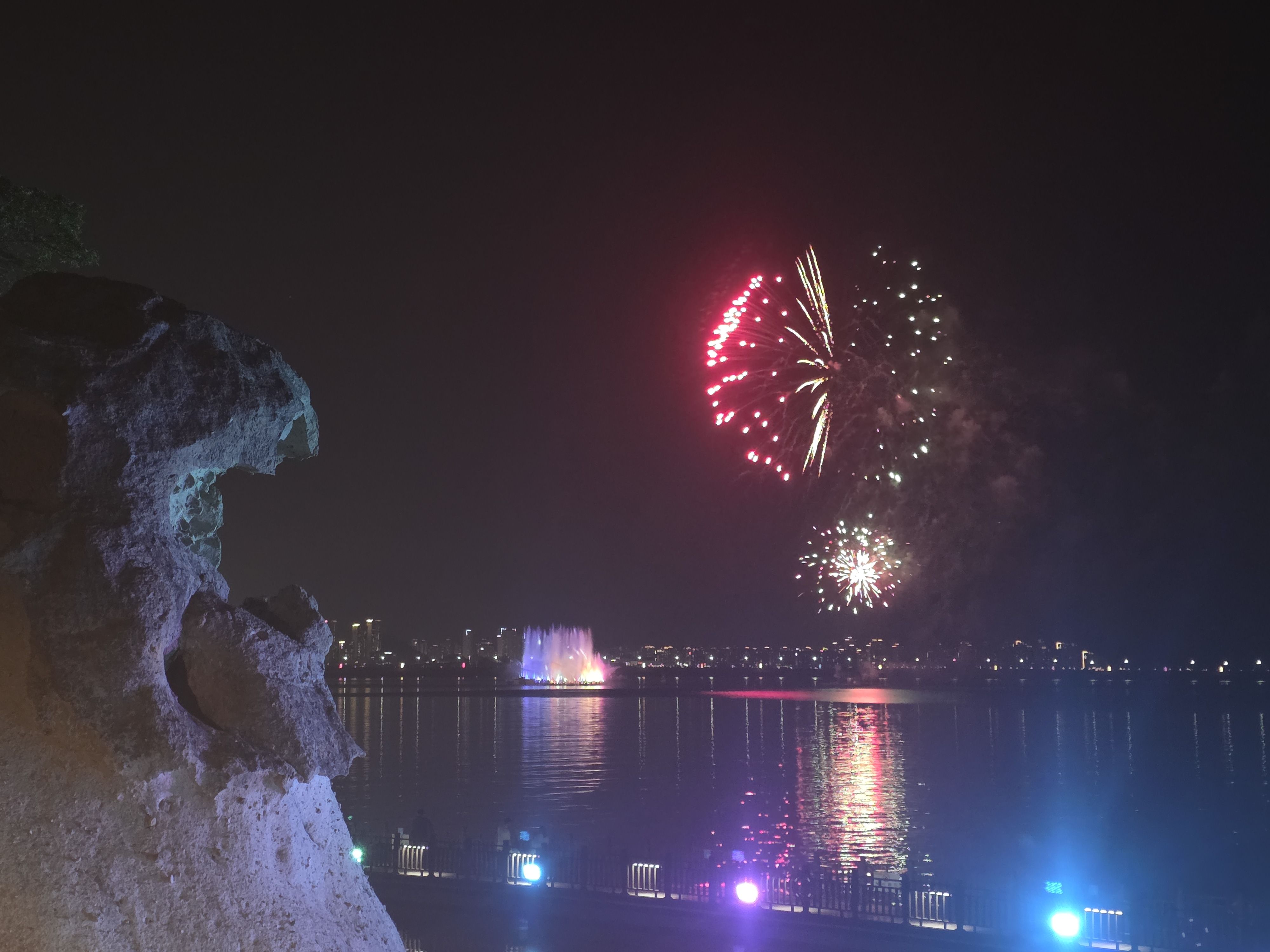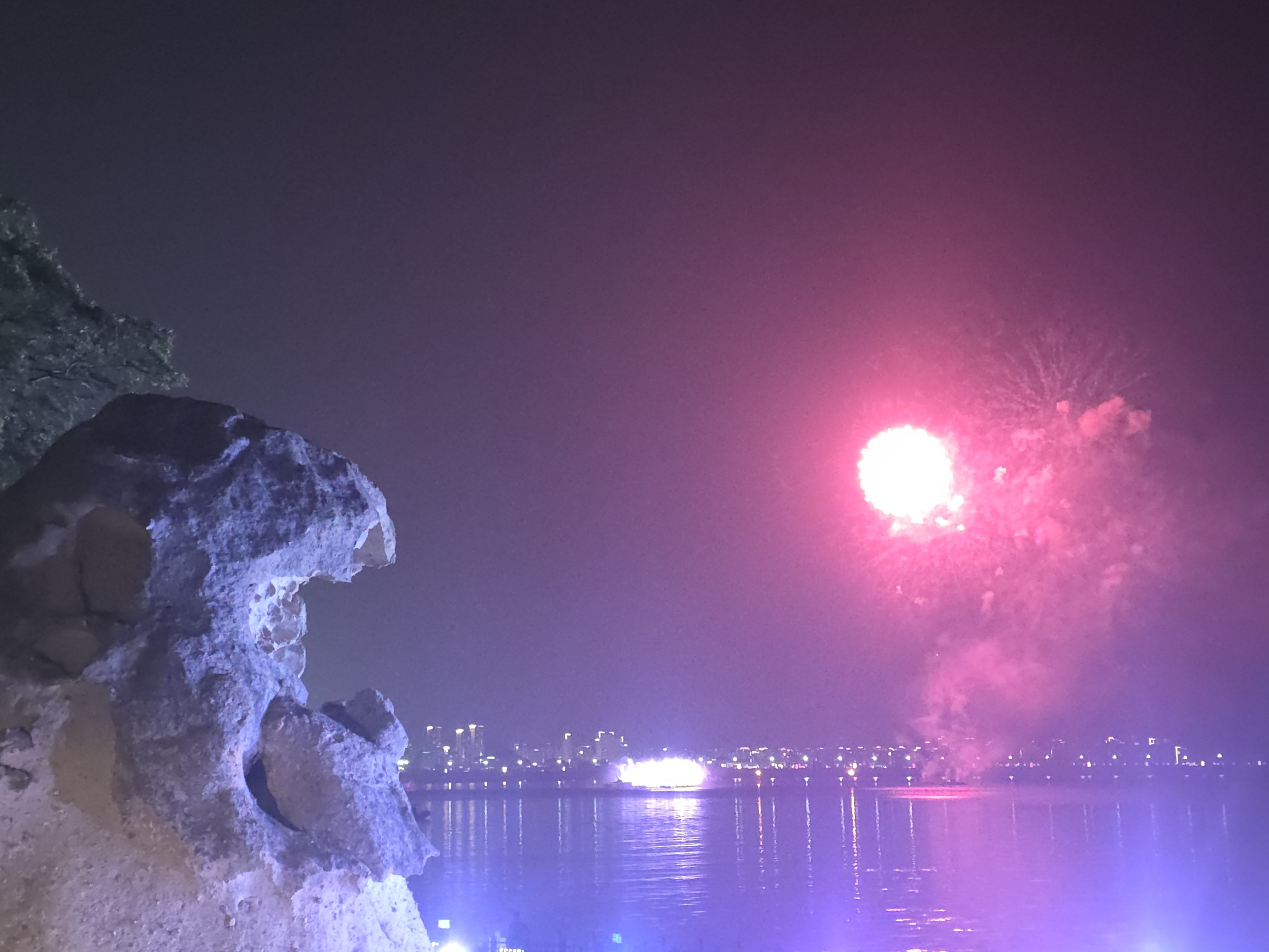 갓바위를 옆으로 두고 오랫동안 불꽃놀이를 조용히 감상했습니다.